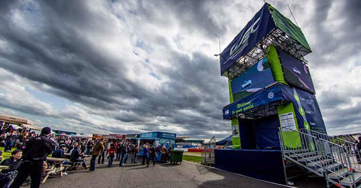Face d'une tente d’accueil de la FAN AREA • Calendrier des courses de la saison 2014