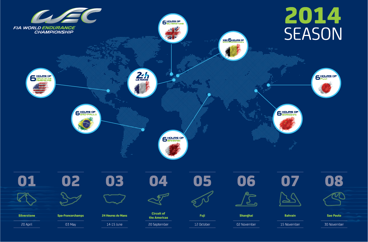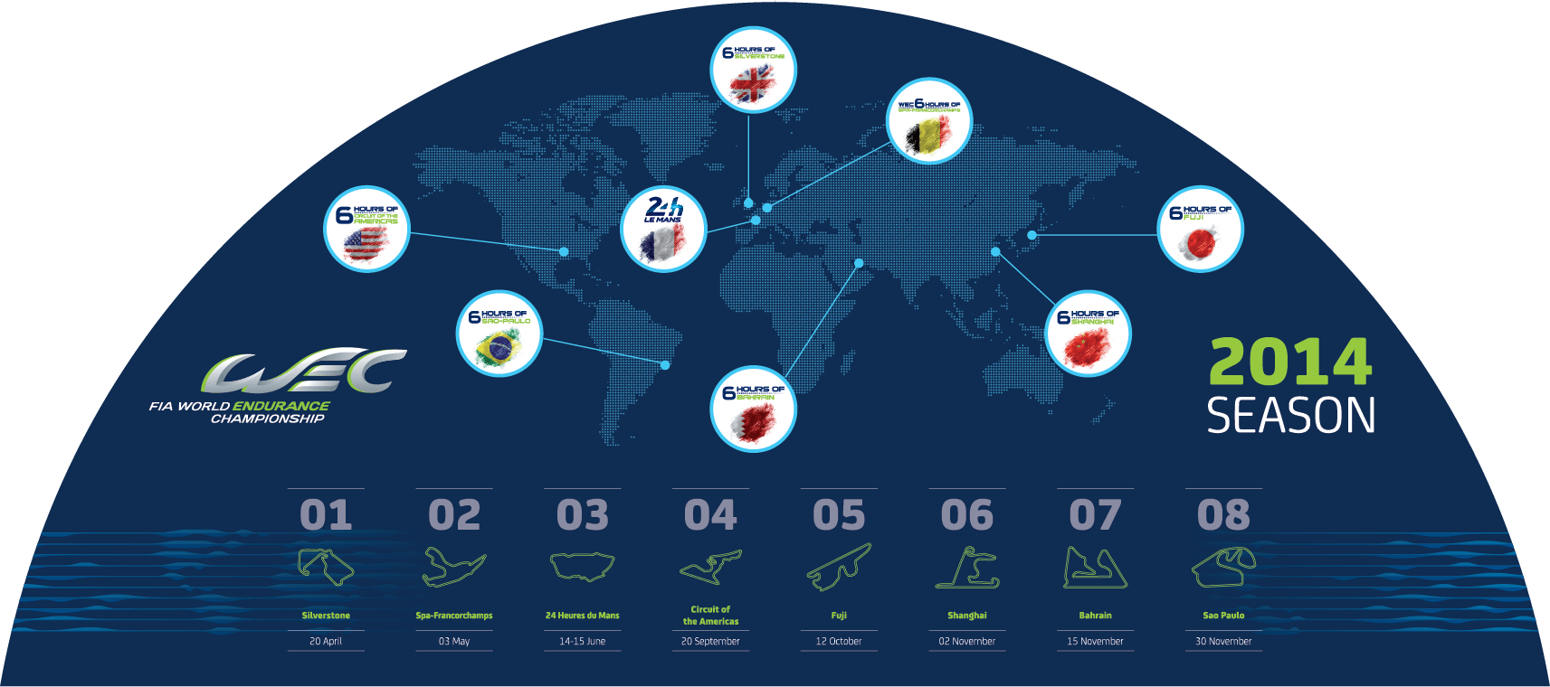 Réalisation de la communication visuelle du Championnat du monde d’Endurance des saisons 2012 à 2015 rythmées par 8 courses de 6 Heures sur 5 continents.